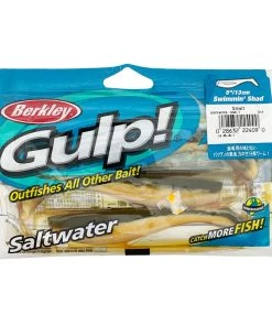 The Berkley Gulp Swimmin Shad soft plastics are a classic paddle tail plastic designed to mimic the action of baitfish on a constant retrieve, and a struggling one with a jerking or twitching retrieve. Their paddle tail creates a realistic side-to-side action that pulsates on both fast and slow retrieves, so they’re quite versatile.