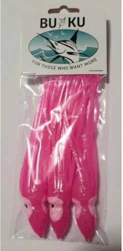The Buku Dredge Strip Teaser is a pre-made dredge teaser that consists of 13 cups coming off the dredge, each cup has 3 individual strips on it that have 3 holographic fish on the outside strips, 4 fish on the inner strips, and 5 on the middle strips. All fish are laminated into the strips so they don’t peel off. In total that’s 141 holographic fish, which really makes this teaser look like a seriously big school chasing the boat!