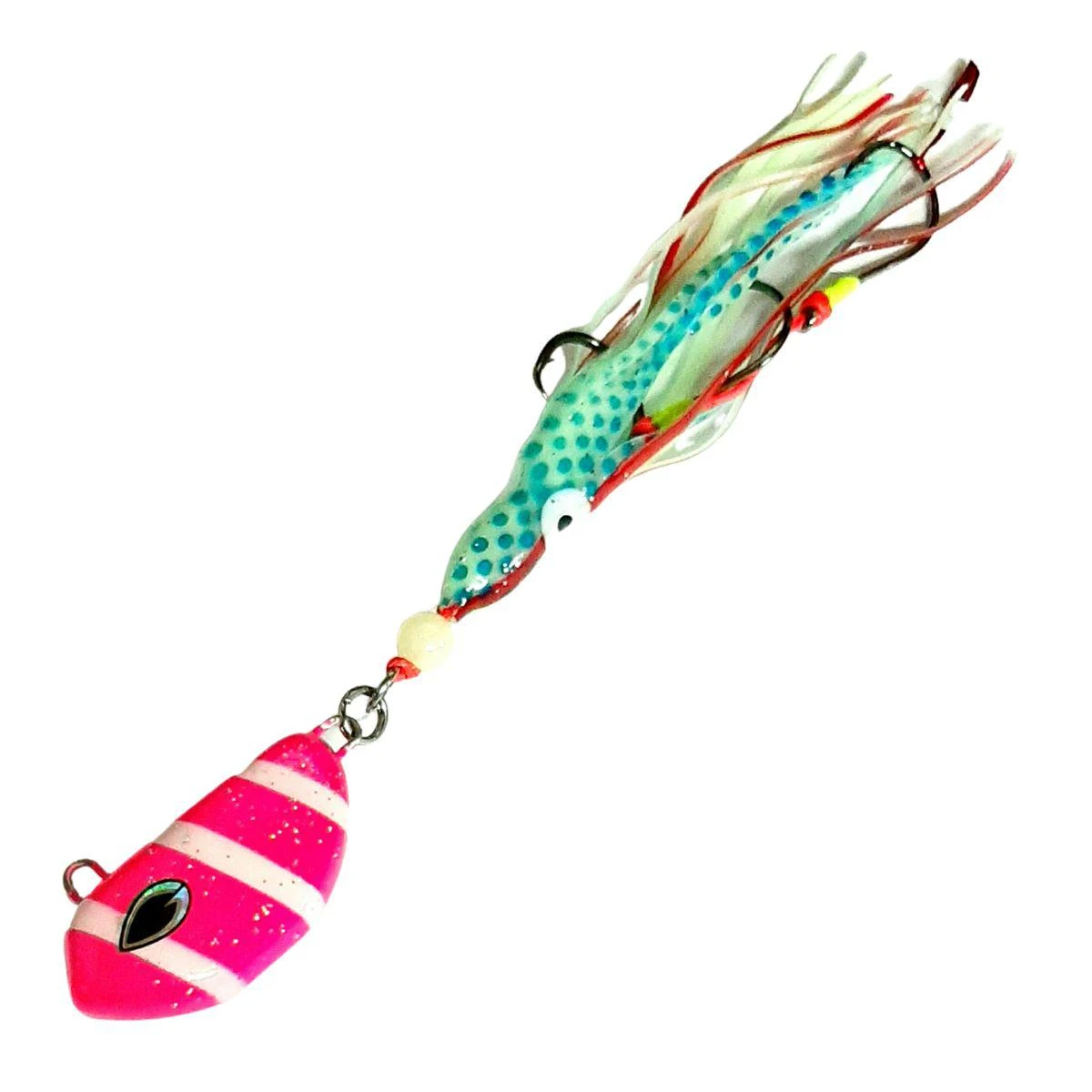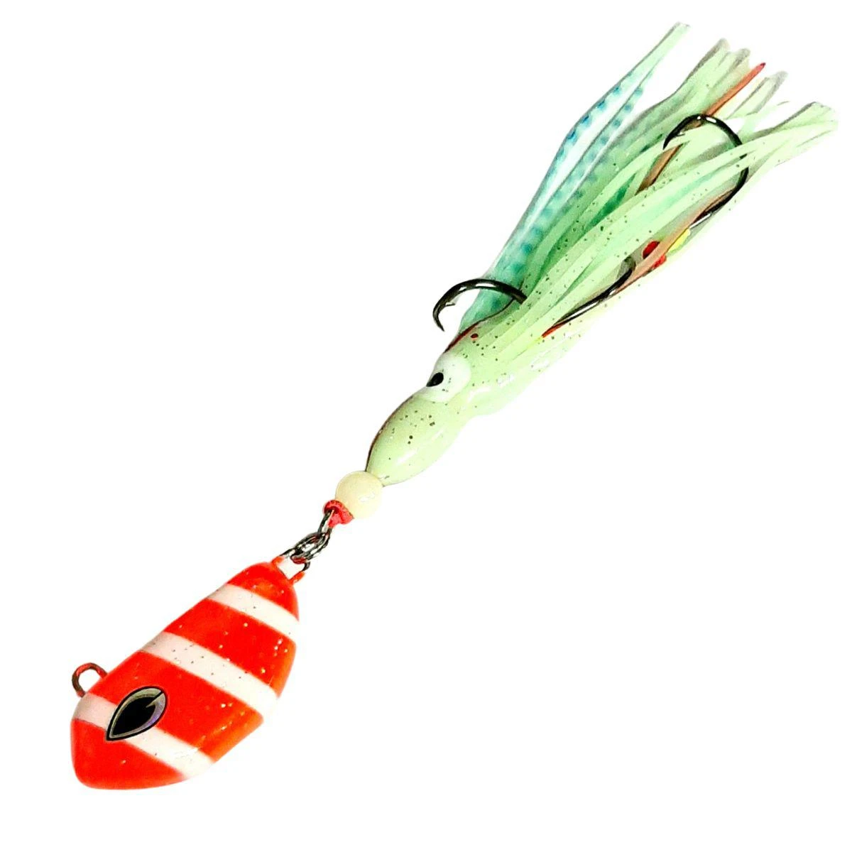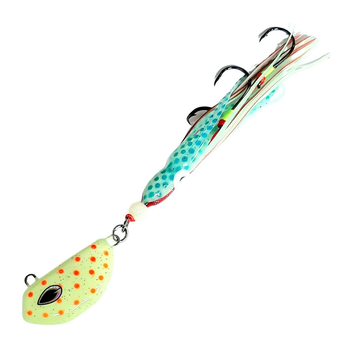 A collaboration between Buku and Snapbait has seen the introduction of the Hybrid Jig. This jig / bait system with custom made jig head enables the jig to drop nose first but offer greater hydrodynamics on the retrieve. Both the jig head and skirt offer a super bright glow which acts as a fish attractant along with the scent of the bait. It can be charged with a high quality UV torch or use the natural light. Â