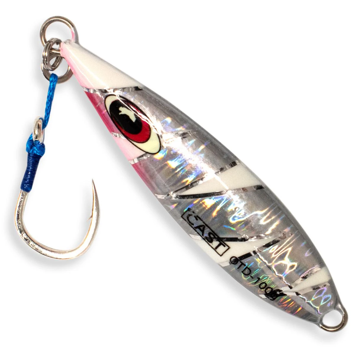 The Slow Pitch On the Drop Jig from Cast are constructed using a premium Japanese foil, pre-rigged with Decoy hooks and YGK assist cord. Available in 5 sizes from 40g to 150g and comes in 4 colours.Â