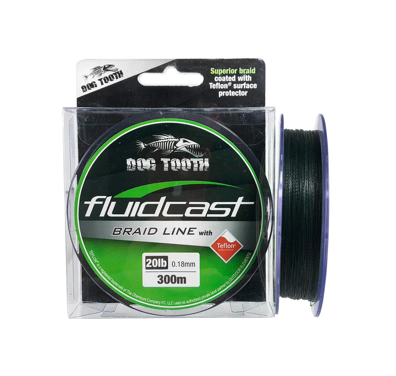 Dog Tooth Fluidcast Braid is a quality 4 carrier braid designed for superior knot strength, zero eleasticity and smooth casting.