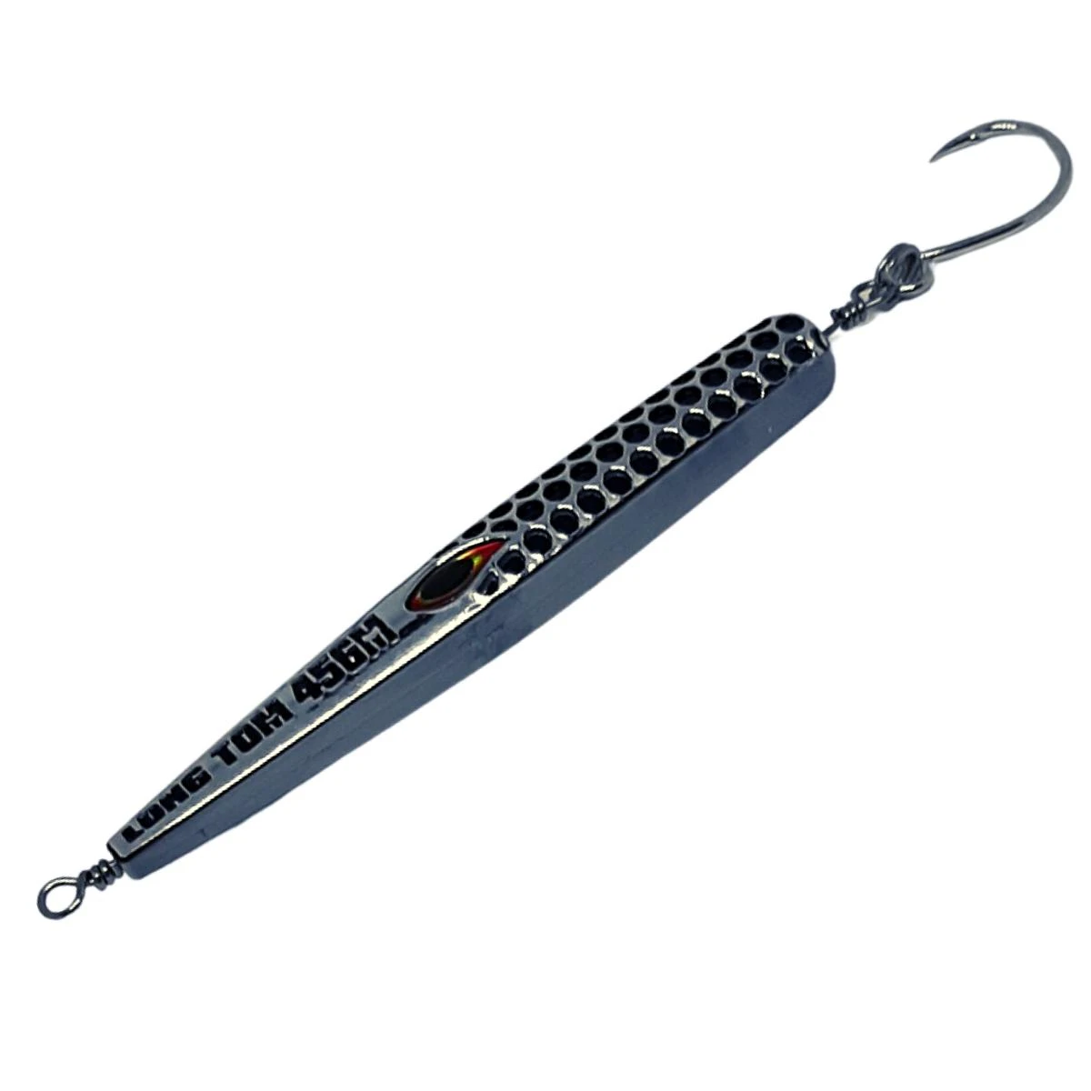 This lure will be a sure winner during salmon season. The improved long casting surf plug, the Dr Hook Long Tom has a fresh new look. Rigged with VMC singles the Long Tom can be used as a fast retrieve to imitate a fleeing baitfish on the surface or let the lure sink as deep as possible and retrieve at speed to target fish at different depths.Â