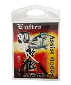 The Entice Power Assist Hooks are a SJ-41 style forged assist hook, perfect for attaching to your jigs when going to hunt for your long desired fish. These heavy duty, streamline, braided and shrink wrapped hooks are ideal for Kingies, Doggies, Mackies, GT’s if you’re up north and a range of other large pelagic species, the Entice Power Assist Hooks will ensure that you can land the fish with confidence.