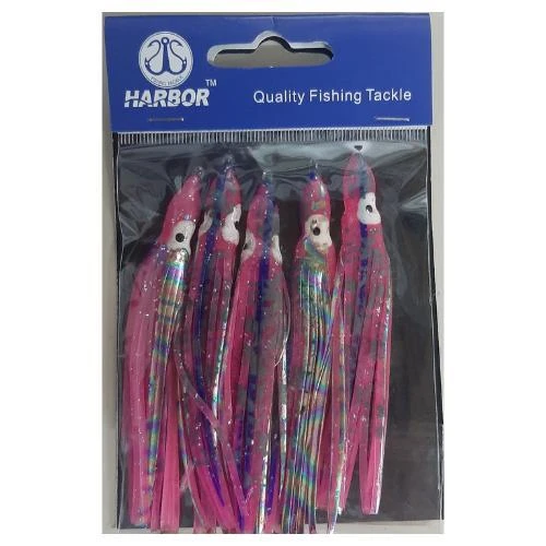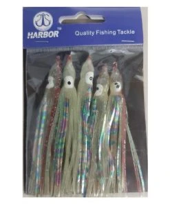 Harbor Octopus Skirts are designed to be used for DIY assist tying/fixing, as a teaser on paternoster reef fishing rigs and as a teaser over the front of a bait for trolling or balloon fishing. They come in a range of colours and sizes 3, 3.5 and 4 inch.