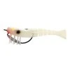 When rigged with a simple jig head, they drop to the bottom and their arms flutter back and forth to attract the fish and on the bottom they sit with their arms in the air in a defensive position.