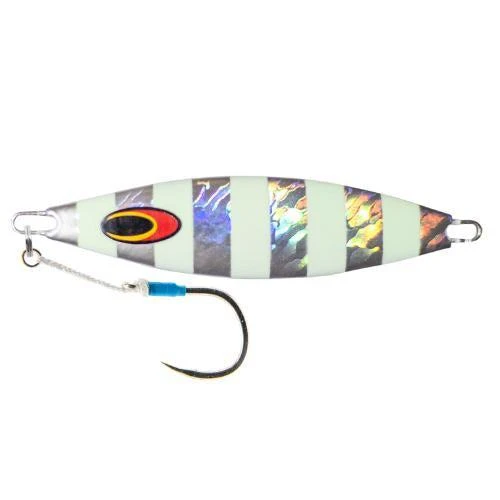 The Buffalo Flash Fall Jig from Nomad Design is a weighted jig designed to target demersal species. Using a long rod stroke with a flick at the end, you get more flash per fall. The flash fall attraction entices more predators to this light show. The strike zone is bigger and longer in a variety of situations.Â