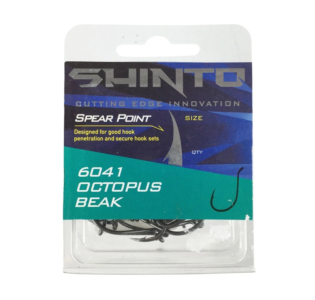 The Shinto Octopus Beak 6041 Hook is a versatile hook fit for a wide range of fishing applications. Octopus hooksare popular across a wide range of sizes due to their versatility. They’re effective for Trout and Bait fishing (8,6,4), Estuary and Bream (4,2,1,1/0), traditional Snapper fishing (4/0,5/0,6/0) through to Jewfish and Kingfish and other larger species (8/0,9/0,10/0). This hook is also widely used as a lightweight live bait hook for many species.. Shinto hooks are made from the latest materials, incorporating the latest technology in Chemical Sharpening to give great hook penetration and secure hook sets. They’re incredibly sharp and strong hooks.