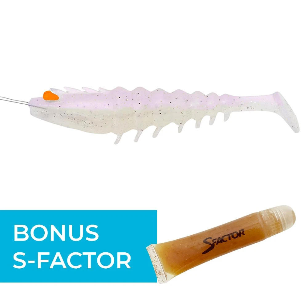 The Paddle Prawn soft plastics also come with a small tube of S-Factor Scent in each packet that can be rubbed on just about anything to enhance the bite and hold of fish.