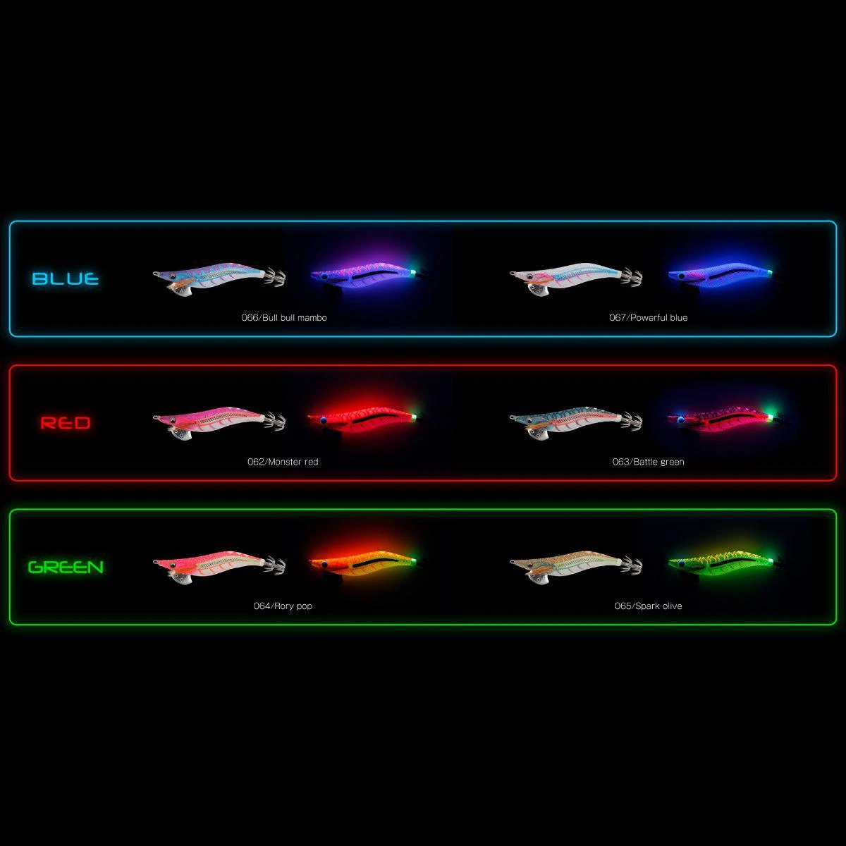 Neon Bright is an exclusive new UV reaction technology from Yamashita which reacts UV Blue, UV Red or UV Green. Introducing the Yamashita EGI OH Neon Bright Live Squid Jig with a great selection of UV colours.