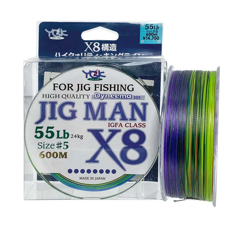 YGK Jig Man X8 Braid is a premium quality dyneema multi-coloured jigging braid made in Japan.